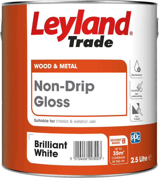 Leyland Trade Non-Drip Gloss is an easy to use hardwearing, gloss finish which requires no undercoat. Ideal for use on interior and exterior wood and metalwork. It offers quick and easy application.